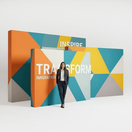 La nostra parete espositiva mobile è costituita da un sistema a griglia pieghevole in metallo e da una parete in tessuto in poliestere da 250 g/m² stampabile frontalmente in quattro colori. La parte stampata dell'espositore pieghevole monofacciale è realizzata con lo stesso materiale dei nostri desk pubblicitari, degli espositori pop up e dei roll up. La combinazione fra prodotti differenti crea un insieme armonico all'interno dello stand, contribuendo così a realizzare un design uniforme dei singoli elementi. Riproduci fedelmente il design della parete espositiva oppure trai ispirazione da colori, font o grafiche di altre dotazioni fieristiche.Le nostre pareti vengono fornite piegate in un trolley per il trasporto, consentendone così l'impiego flessibile in diverse occasioni. Al momento dell'ordine, puoi inoltre decidere di acquistare due lampade alogene abbinate da fissare al bordo superiore dell'espositore pieghevole monofacciale per illuminare verso il basso la parte anteriore stampata.