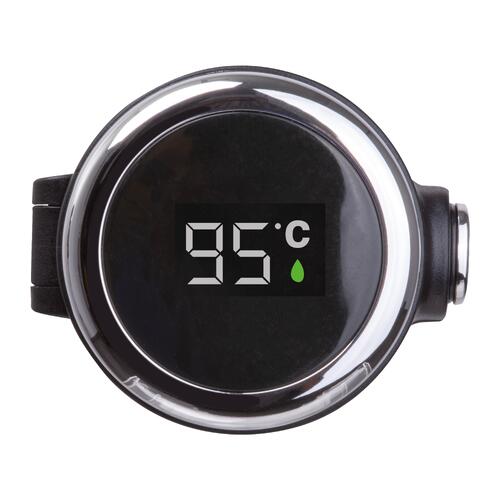 - Bottiglia termica con indicatore di temperatura – 420 mlBottiglia isotermica in acciaio inox con capacità di 420 ml, dotata di chiusura di sicurezza e indicatore digitale di temperatura integrato nel tappo