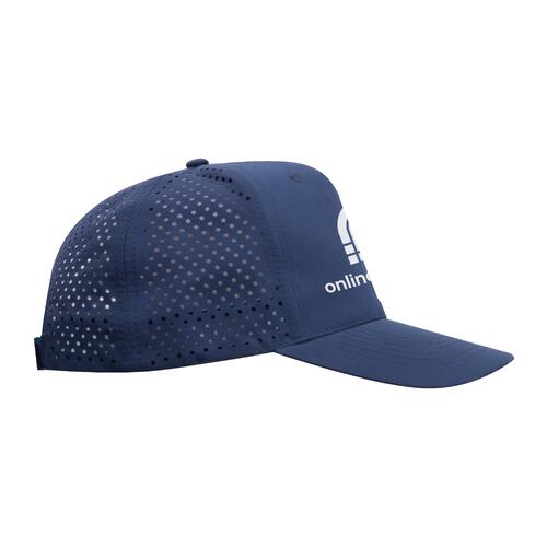 - Cappellino baseball a 5 pannelli in poliestere con chiusura a velcro sulla nuca e fascia interna per il sudore