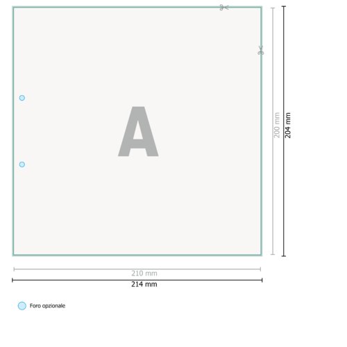 - Formato dei dati (incl. 2 mm refilo): 21,4 x 20,4 cm