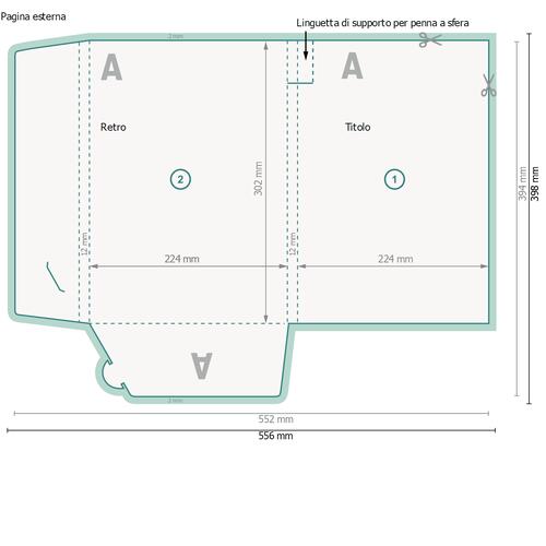 - Formato dei dati (incl. 2 mm refilo): 55,6 x 39,8 cm