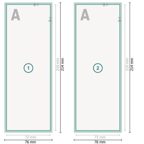 - Formato dei dati (incl. 2 mm refilo): 7,6 x 21,4 cm