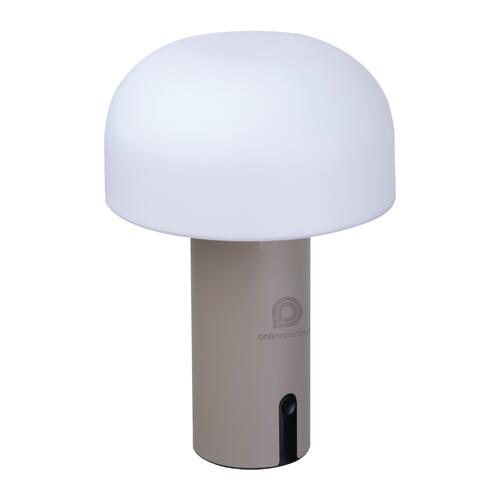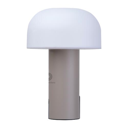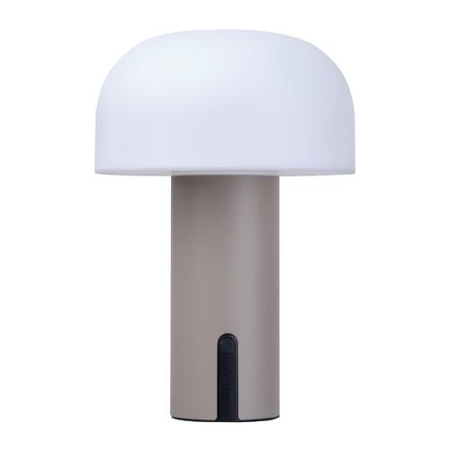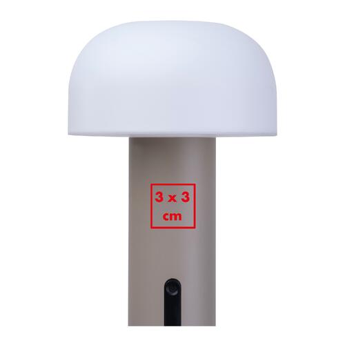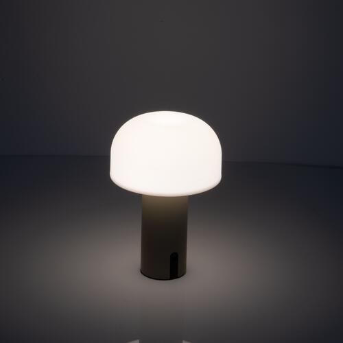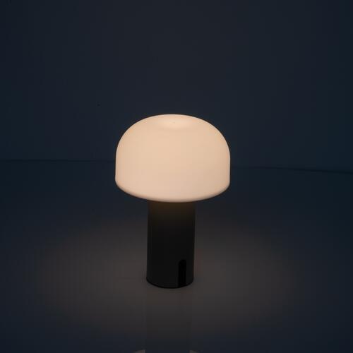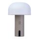 - Lampada a batteria (1.800 mAh) con paralume in plastica e base in acciaio inox, dotata di un cavo di ricarica USB-C da 70 cm
