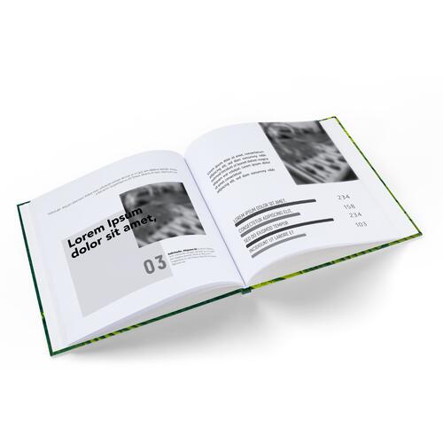 - Libro con copertina rigida in formato verticale, con dorso diritto e angoli a punta, incluso capitello bianco