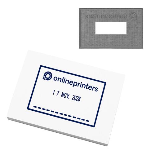 - Produzione e taglio della piastra del timbro in base ai dati di stampa; possibile forma esterna irregolare