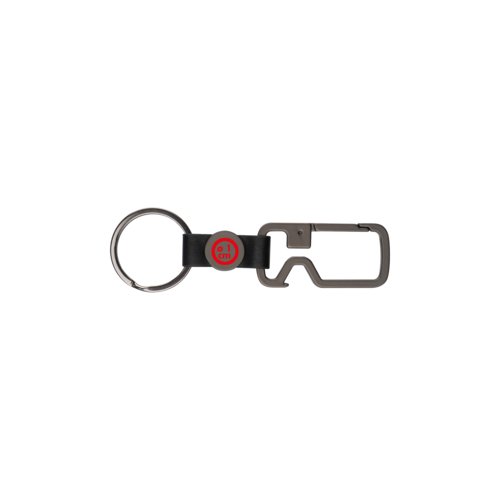 - portachiavi color grafite con moschettone, anello portachiavi e apribottiglie