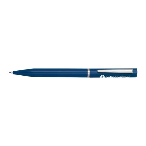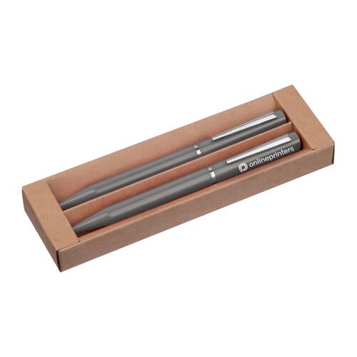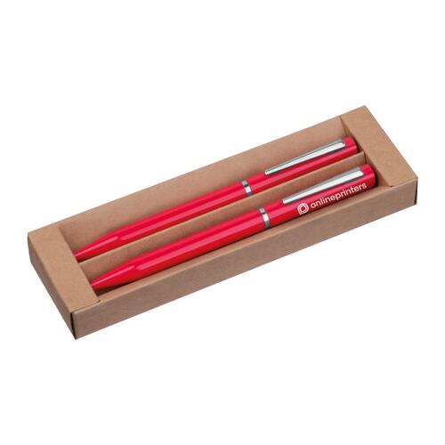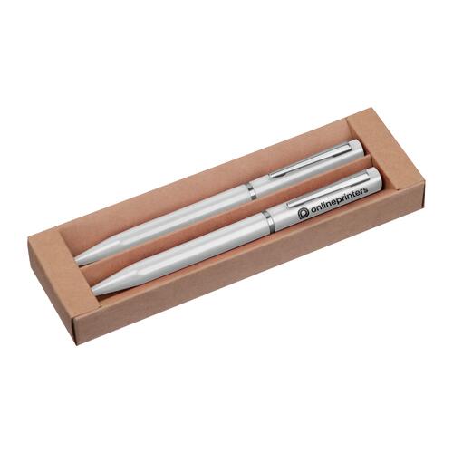 - Set da scrittura composto da una penna a sfera a rotazione con inchiostro blu, una matita a rotazione senza inchiostro e una confezione in cartone