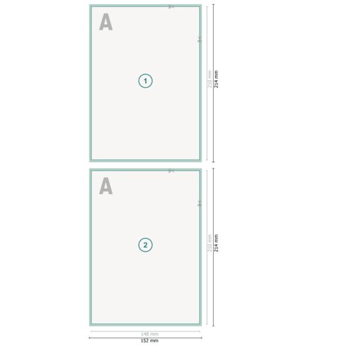 - Formato dei dati (incl. 2 mm refilo): 15,2 x 21,4 cm