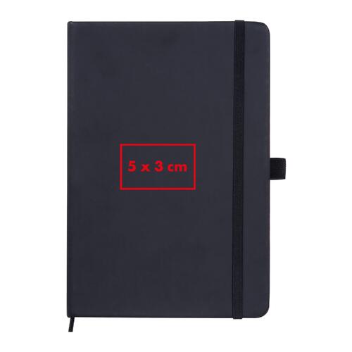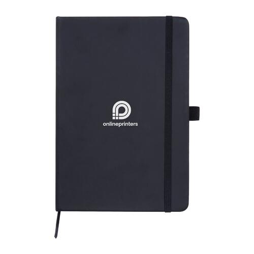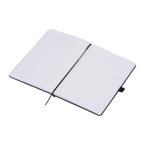 - Taccuino A5 con copertina in PU, segnalibro, fascia di chiusura, passante per penna e 120 pagine a righe in carta di pietra