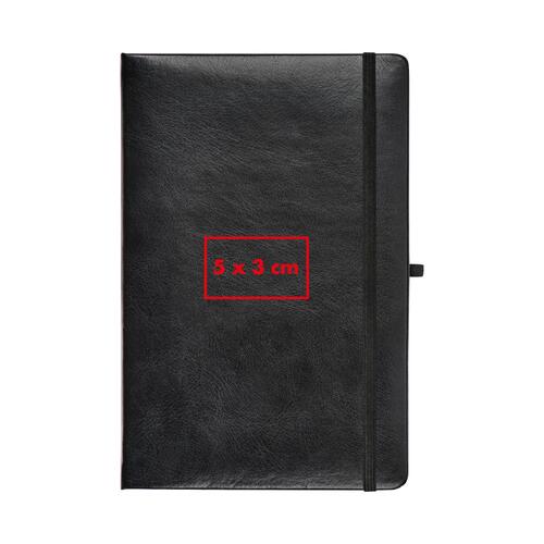 - taccuino in formato A5 con elastico di chiusura, 160 pagine a righe, un occhiello portapenne, un segnalibro e una tasca richiudibile sul retro della copertina