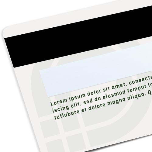 Avvisi sui dati per la stampa Tessere in plastica con area per la firma e banda magnetica, 8,6 x 5,4 cm, stampa fronte/retro